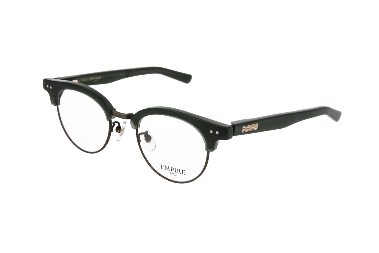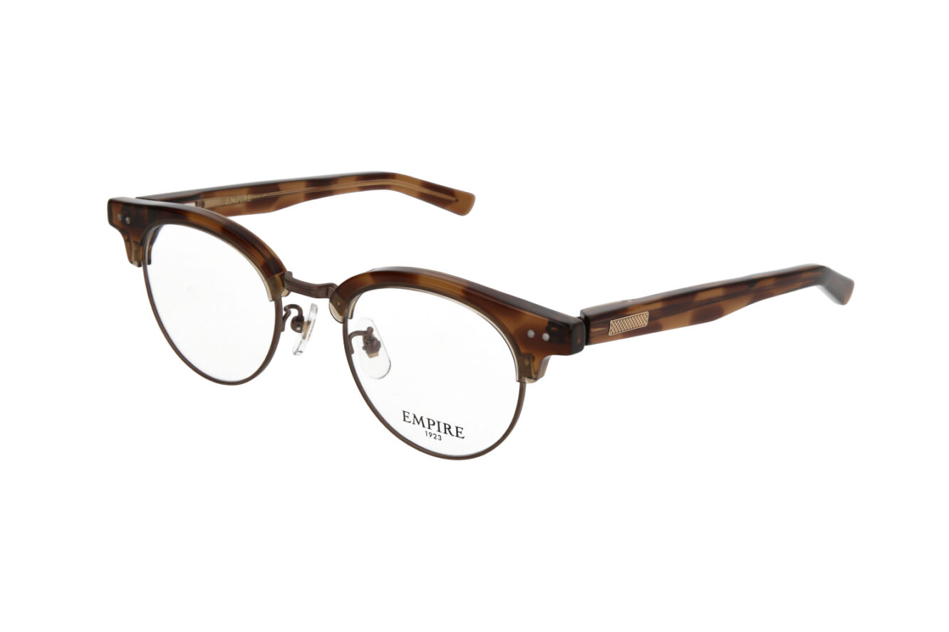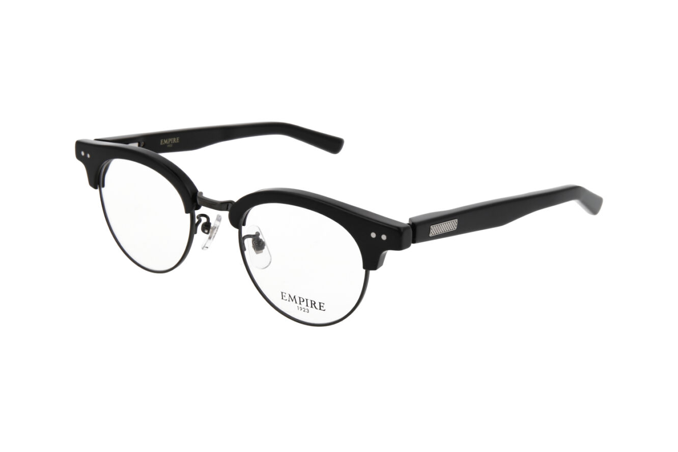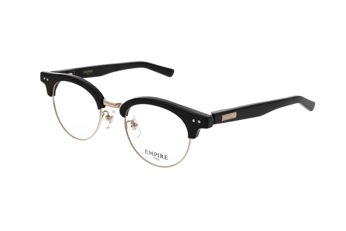 アセテートテンプルのバネ部分も二次加工で丁寧に削り出すことにより、従来のテンプルよりも軽量に仕上げています。また、6mm厚のフロントをフレームの重心が前にならないようにバランスを考え、テンプルエンド部分は肉厚にデザイン・設計しています。 ※写真は101です。